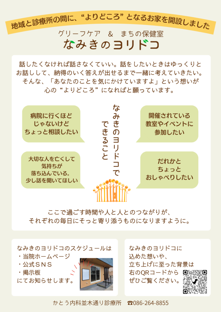 グリーフケア&まちの保健室「なみきのヨリドコ」オープンイベントを開催します。