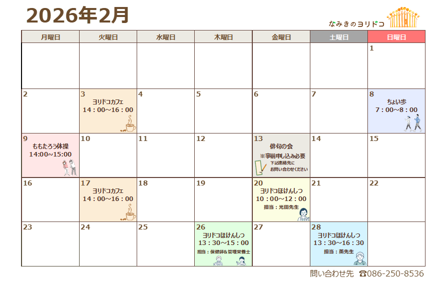 2月のスケジュールはこちらです!お気軽にお越しください☺