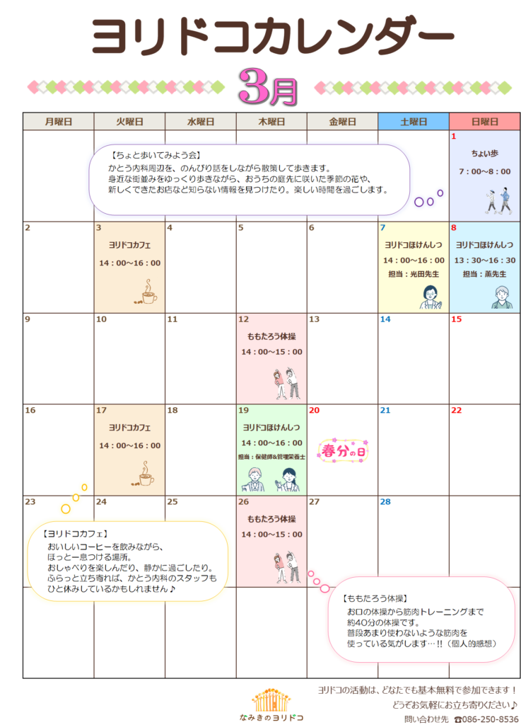 3月のスケジュールはこちらです!お気軽にお越しください☺
